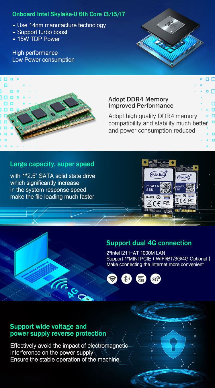 Уграђени рачунар Цоре И5 7200У Мини ПЦ без вентилатора
